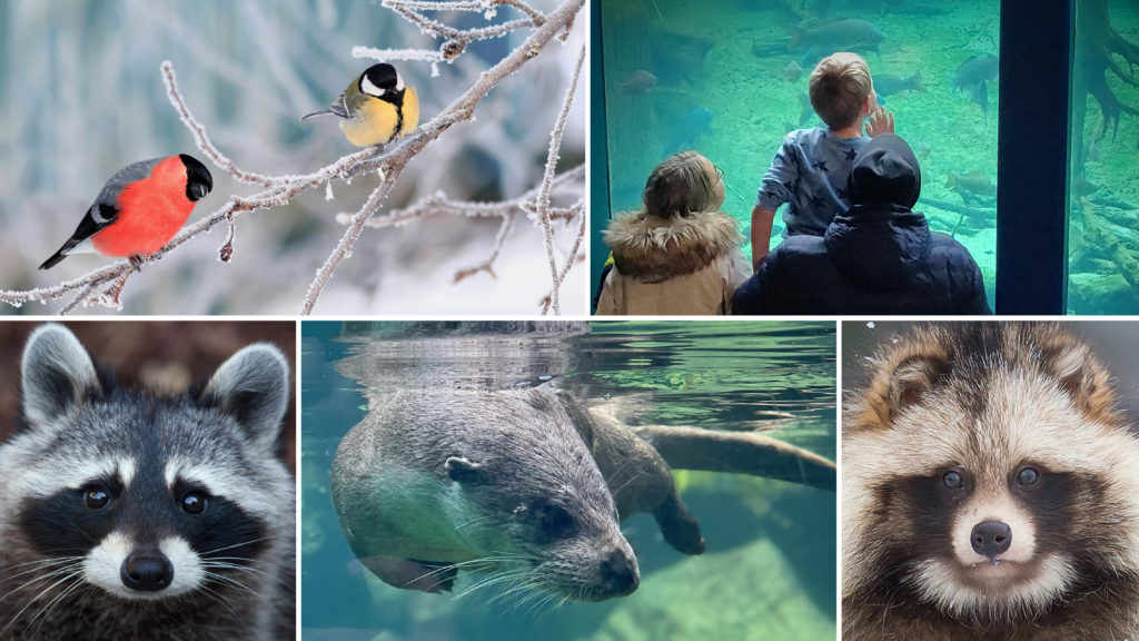 Indenfor kan I få besvaret alle jeres spørgsmål og komme helt tæt på nogle af parkens dyr, uden at de hverken bider eller løber væk, ved guidens naturstation. Her kan I også gå på fuglejagt – Udfordr jer selv ved at finde alle de små fugle, fra vinterlandskabet, der har gemt sig rundt i den lune akvariebygning. Det bliver bare vildt hyggeligt!
